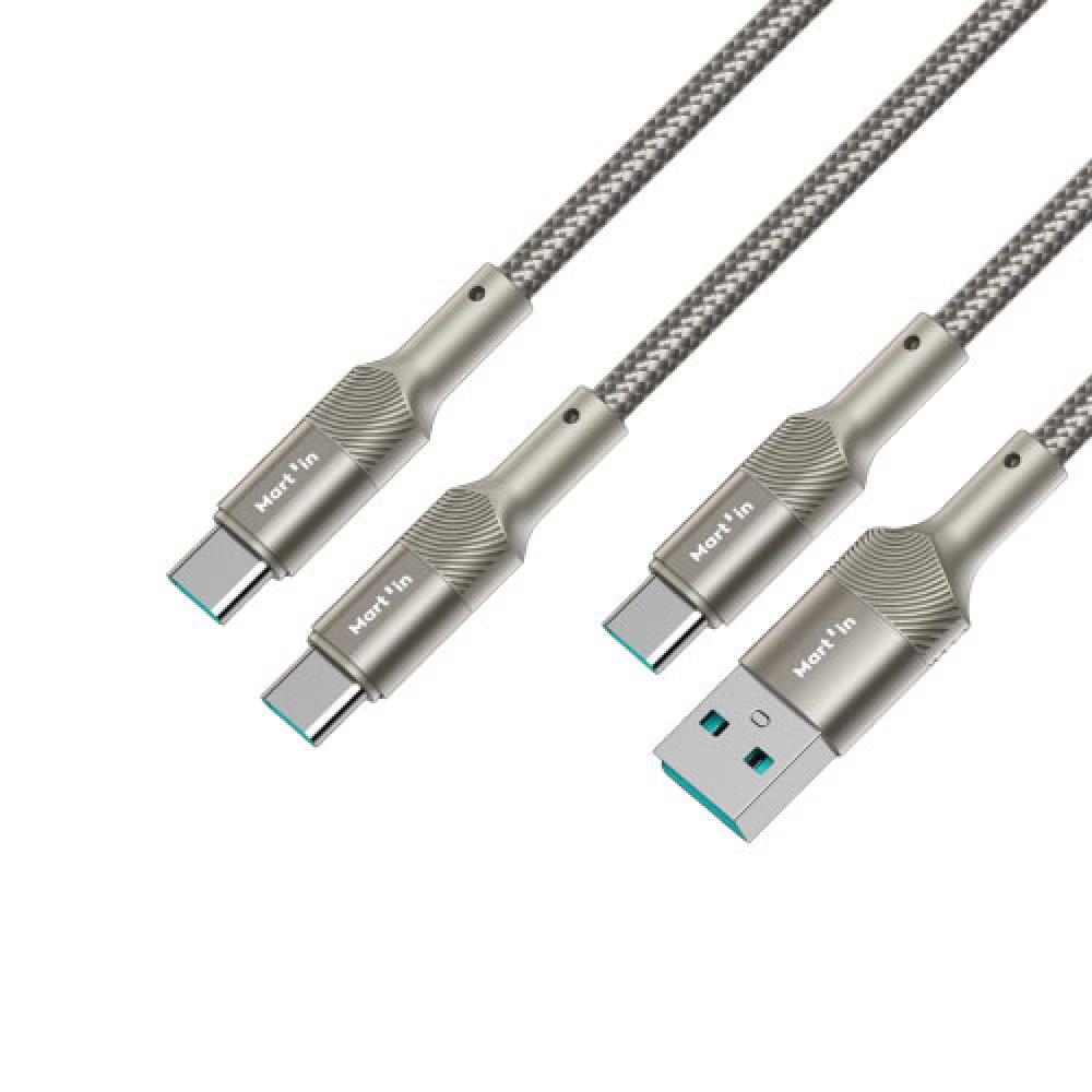 - الكيبل الثاني: كابل شحن ونقل بيانات USB إلى Type-C مصنوع من مواد معدنية متينة لضمان الاستخدام الطويل الأمد والحماية من التلف. يوفر شحن سريع ونقل بيانات فعال لأجهزتك .