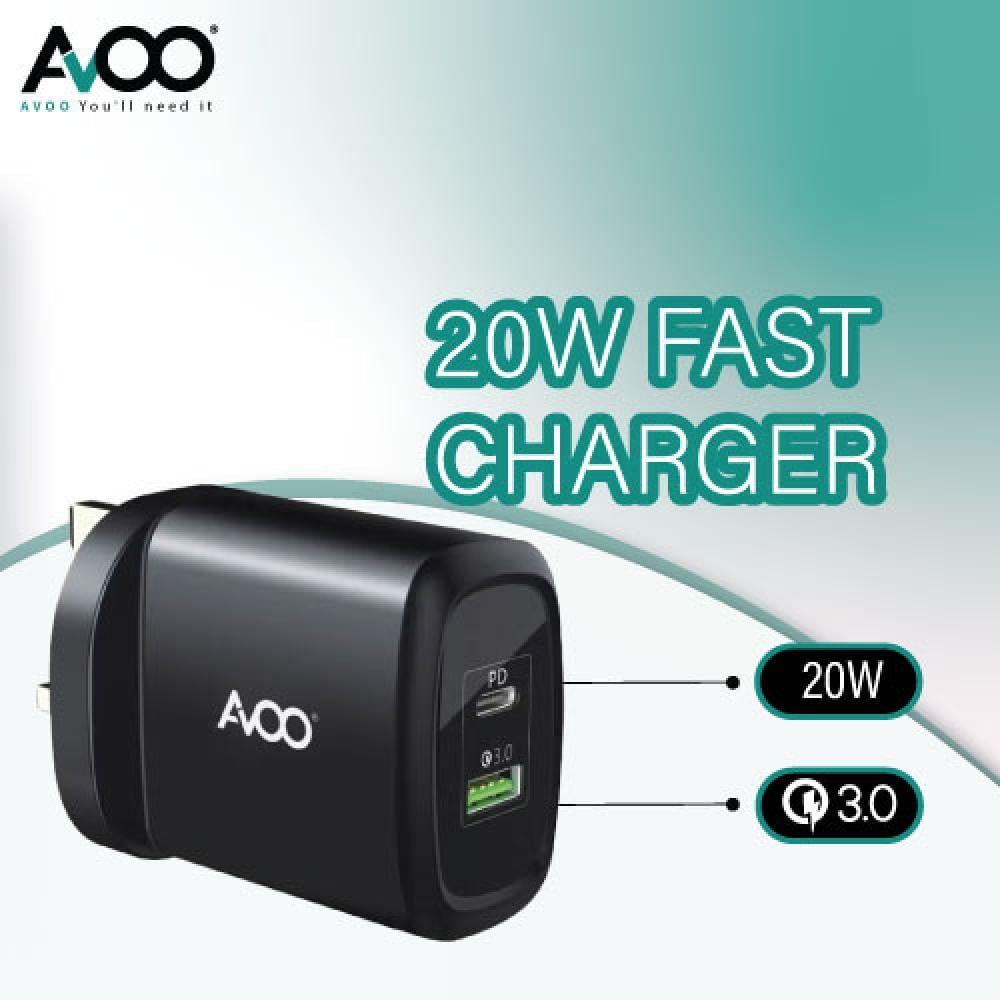 - أفو قابس USB C، شاحن iPhone، شاحن جداري سريع بمنفذ USB مزدوج بقدرة 20 وات، كتلة شاحن USB C .